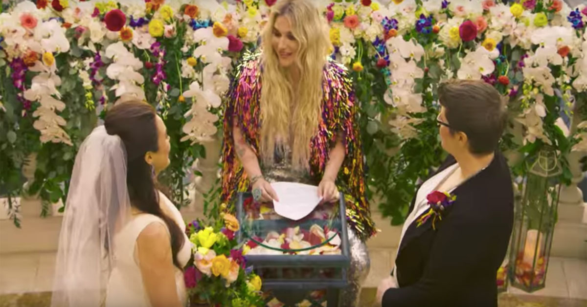 Interpreta Kesha a oficiat o căsătorie a unui cuplu de lesbiene, în ultimul său videoclip, pentru piesa „I Need a Woman”, o reînterpretare a renumitei „I Need a Man to Love Me" de Janis Joplin.