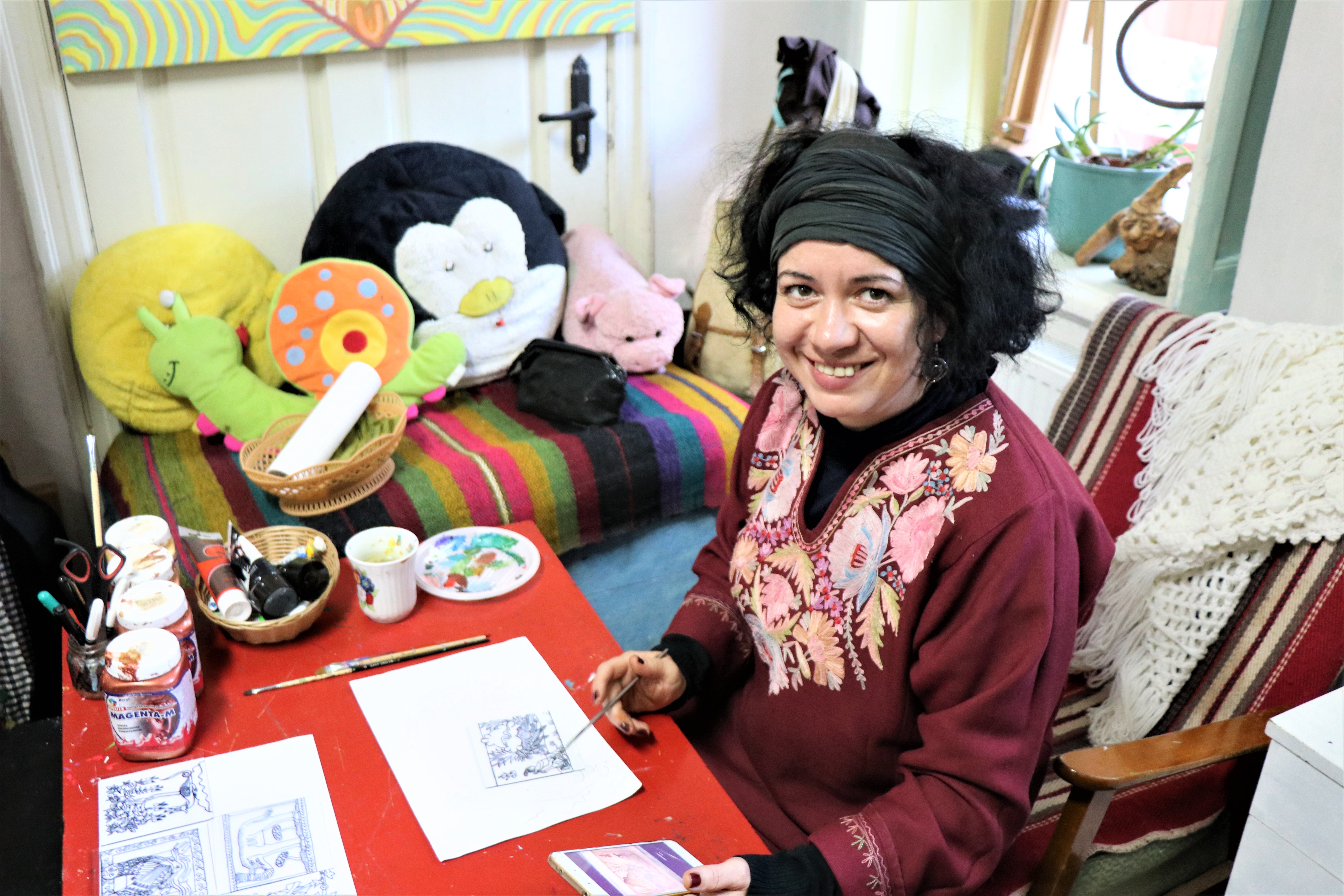 Я нахожусь здесь, потому что хочу поговорить о выставке фотографий и картин, которую уже скоро организует ГЕНДЕРДОК-М (ГДМ), единственная организация в Молдове, продвигающая и защищающая права ЛГБТ в нашей стране. Работы, которые будут представлены на выставке, были созданы в рамках более 20 арт-ателье по рисованию, проведенных Василуцей. Каждое занятие с художницей было в своем роде воображаемым путешествием во времени и в различные художественные течения, направления и стили, начиная с символизма и фовизма 19-го века, и заканчивая сюрреализмом и оптическим искусством. В итоге, бенефициары организации закончили 40 картин, на которые можно будет посмотреть с 19-го февраля в столичной библиотеке Б.П. Хаждэу. Я пришла к Василуце в поисках ответа на вопрос: каким образом люди, которые, вроде, никак не соприкасаются с искусством в повседневной жизни, так красиво творят в ее доме?