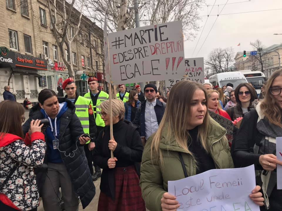 Вместе с марширующими шли председатель Совете по предупреждению и ликвидации дискриминации и обеспечению равенства Ян Фельдман, двое избранных депутатов от блока ACUM — Дан Перчун и Раду Мариан. Пришел на марш и ЛГБТ-активист, первый открытый гей Гагаузии Андрей Колиогло. Он надел венок на голову и нес собственноручно сделанный плакат с надписью на гагаузском «Женщина не должна терпеть насилие».